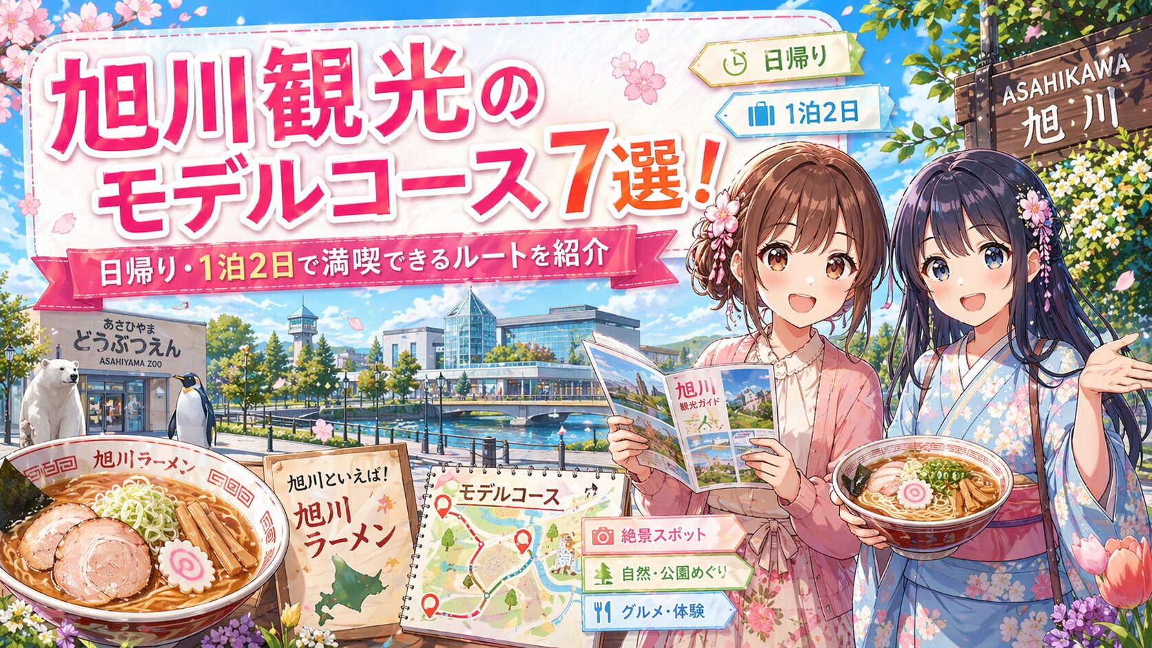 「旭川観光ってどこを回ればいいの?」「日帰りと1泊2日、どっちがおすすめ?」 そんな疑問をお持ちの方に向けて、この記事では旭川観光のモデルコース7選を徹底解説します。 日帰りでも満喫できる効率コース3選 1泊2日でのんびり楽しめるコース4選 旭山動... -