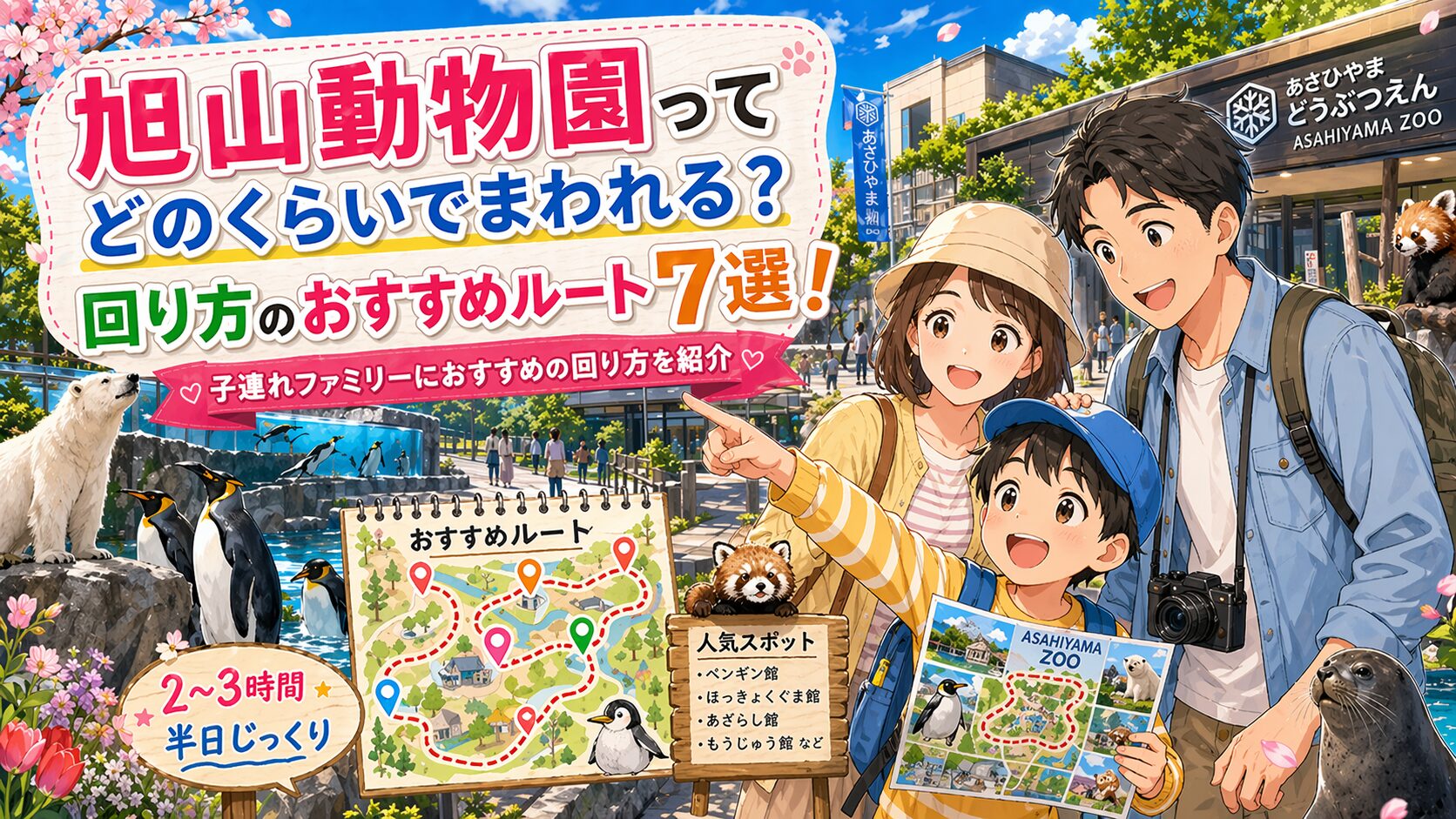 北海道旅行の定番スポット「旭山動物園」。 ペンギンやホッキョクグマなど、子供が大好きな動物たちを間近で見られる人気の動物園です。 でも、初めて行く時だと「どのくらい時間がかかるの?」「子供連れでも回れる?」と不安になりますよね。 特に未就学... -